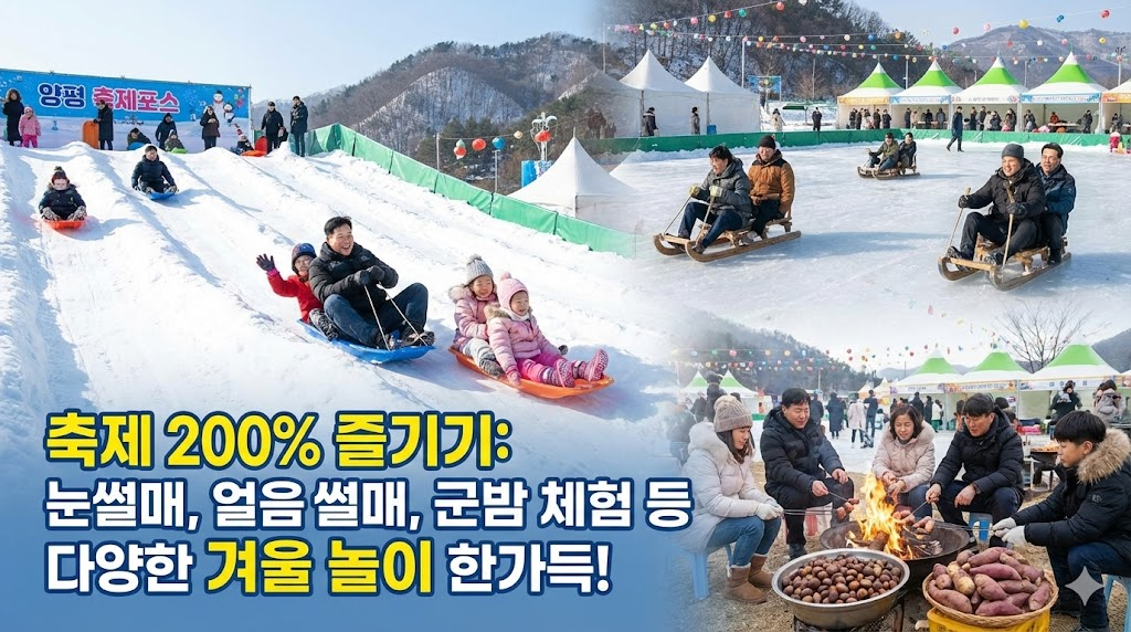 안녕하세요! 겨울 스포츠와 축제를 사랑하는 여러분, 오늘은 2026년 겨울을 뜨겁게 달굴 특별한 소식을 가지고 왔습니다. 바로 많은 분들이 기다리셨던 2026 양평 빙송어축제 소식인데요. 매년 겨울, 양평은 얼음 위에서 펼쳐지는 빙어 낚시의 짜릿함과 다양한 겨울 체험 프로그램으로 수많은 방문객들의 발길을 이끌고 있습니다. 저도 작년에 다녀왔을 때 정말 잊지 못할 추억을 만들었거든요.